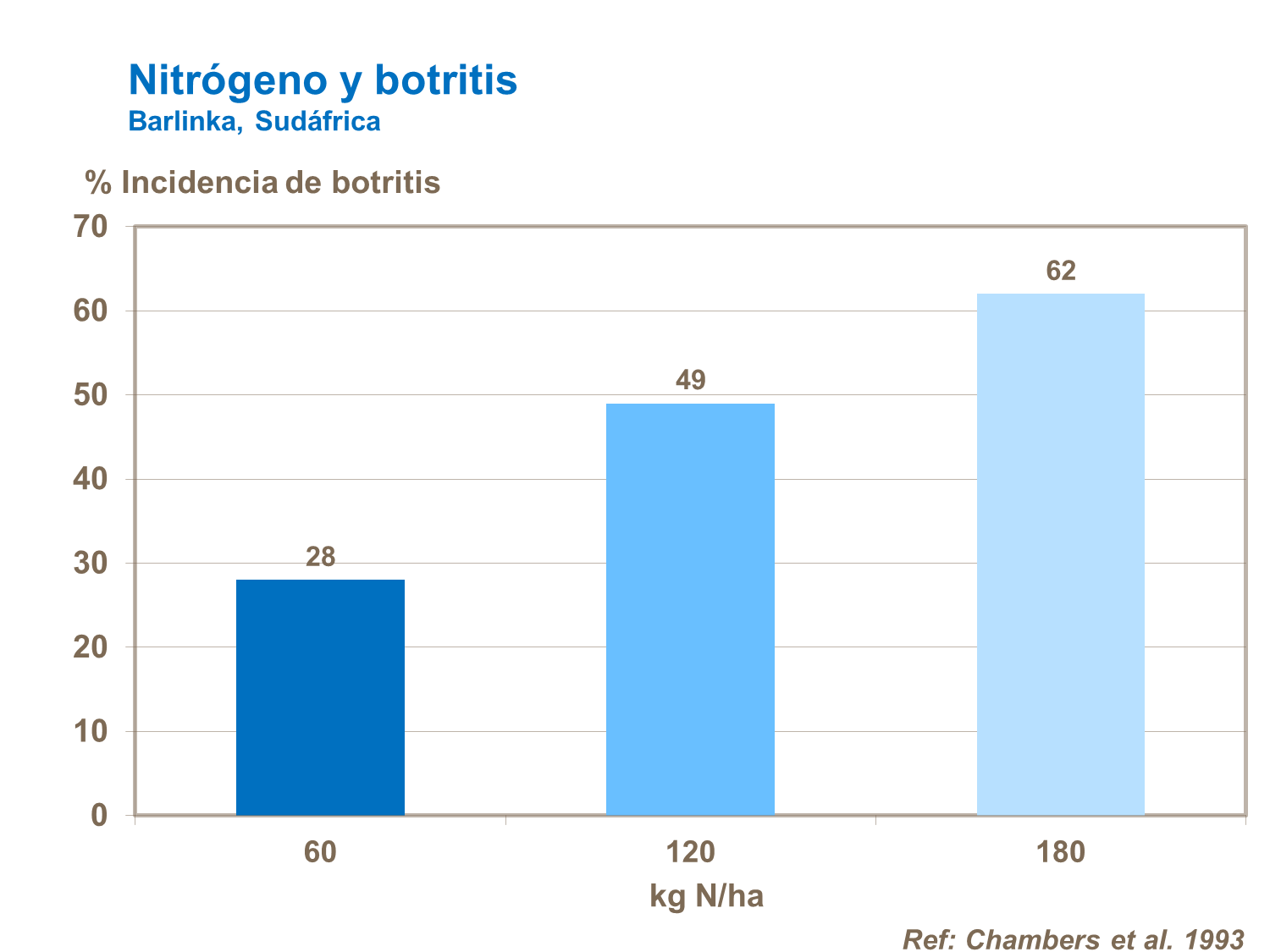 Un crecimiento vigoroso como resultado de un exceso de nitrógeno, incrementa la susceptibilidad a enfermedades como la botrytis.